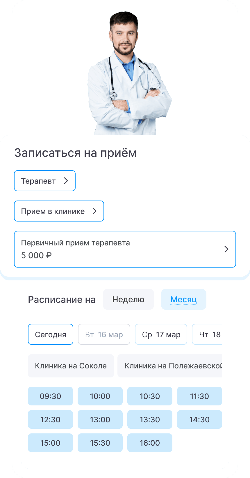 Запись на странице врача