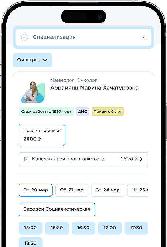 запись на странице врача