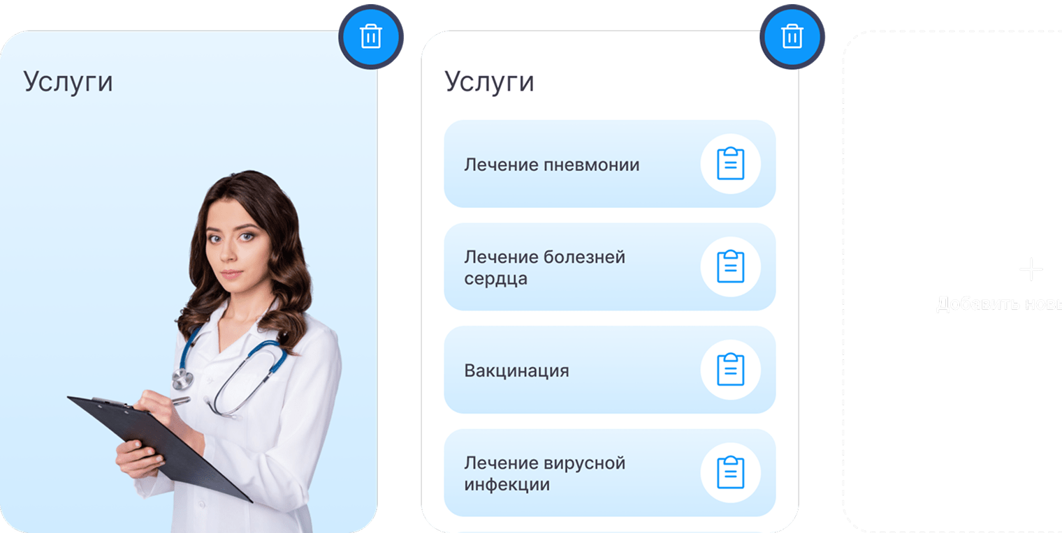 Нами реализованы интеграции в большинство популярных МИС. Это позволяет автоматически передавать на сайт клиники такие данные, как список врачей, услуги, стоимость медицинских услуг, расписание и другие важные элементы, что значительно упрощает управление содержимым сайта.
