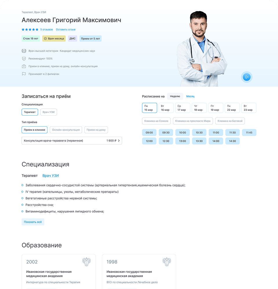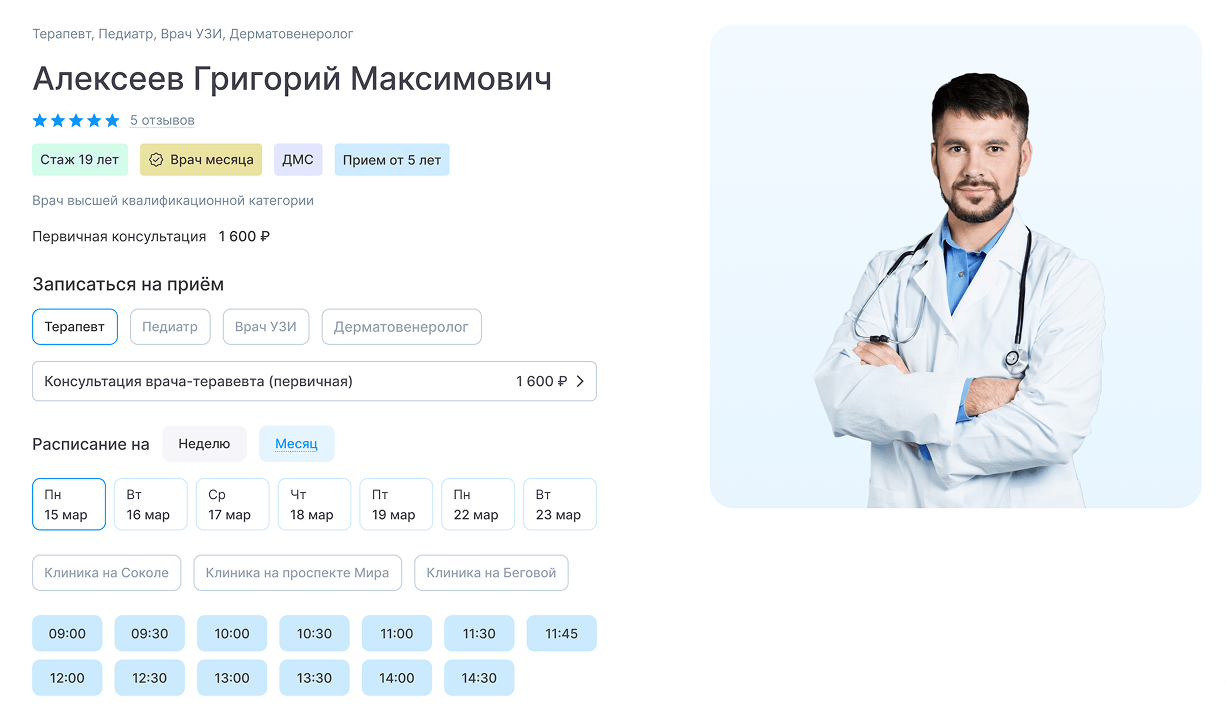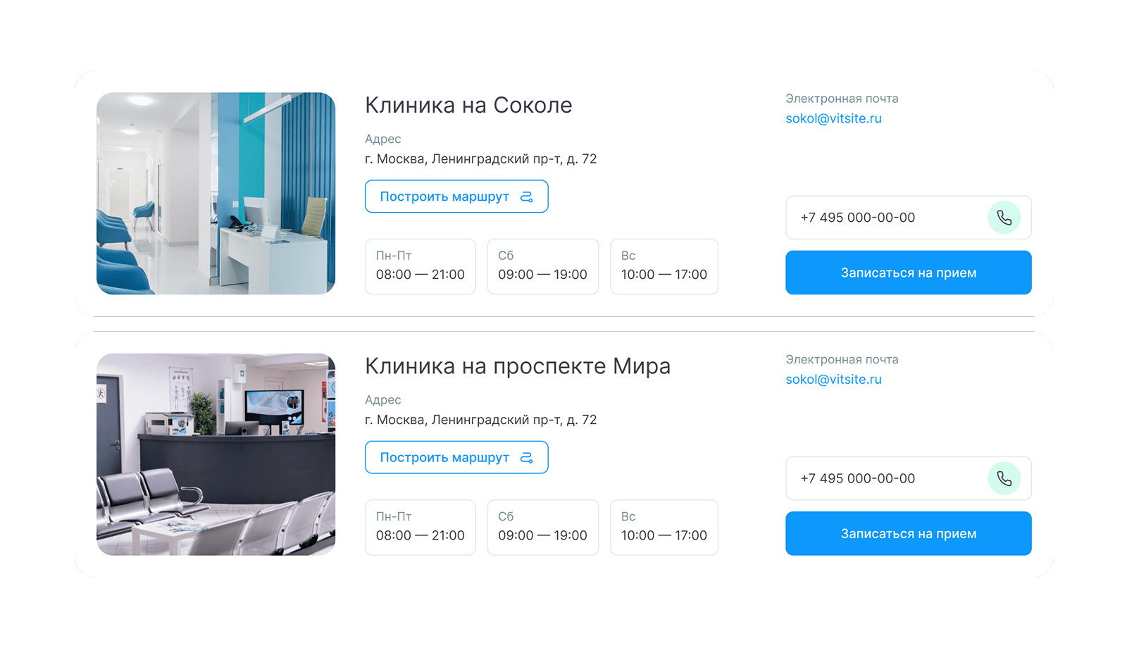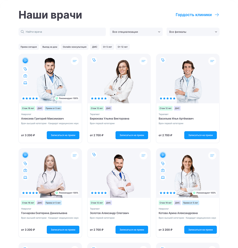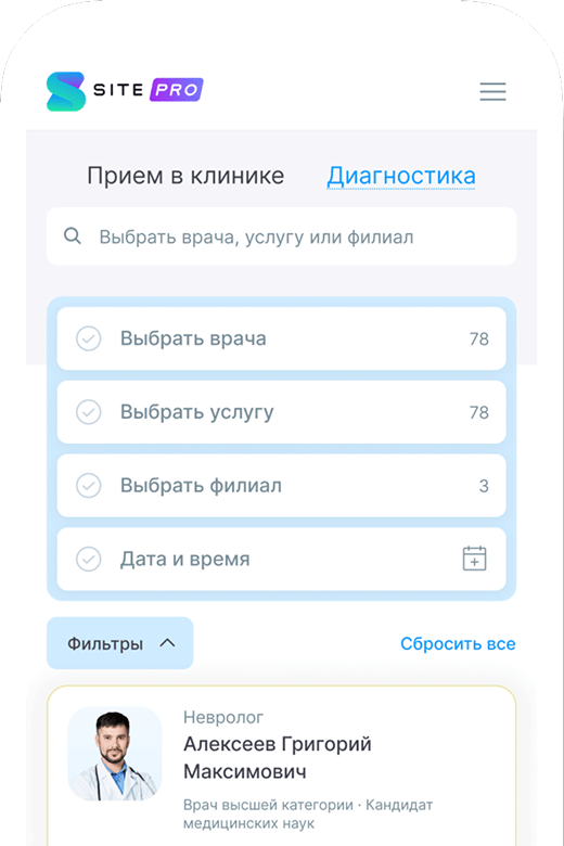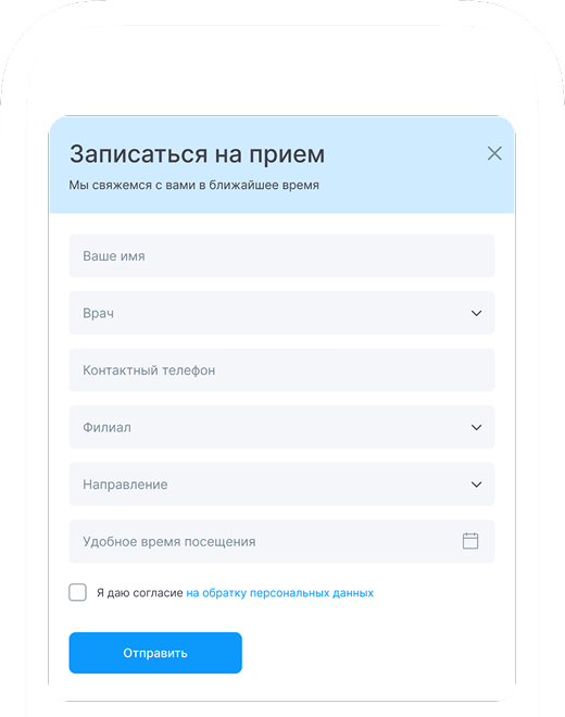 Мы предлагаем три варианта онлайн-записи для сайта клиники: от простых форм для записи на приём до более сложных интеграций с расписаниями врачей и бронированием слотов через МИС. Онлайн-запись на сайте клиники позволяет повысить удобство для пациентов и автоматизировать процесс записи.