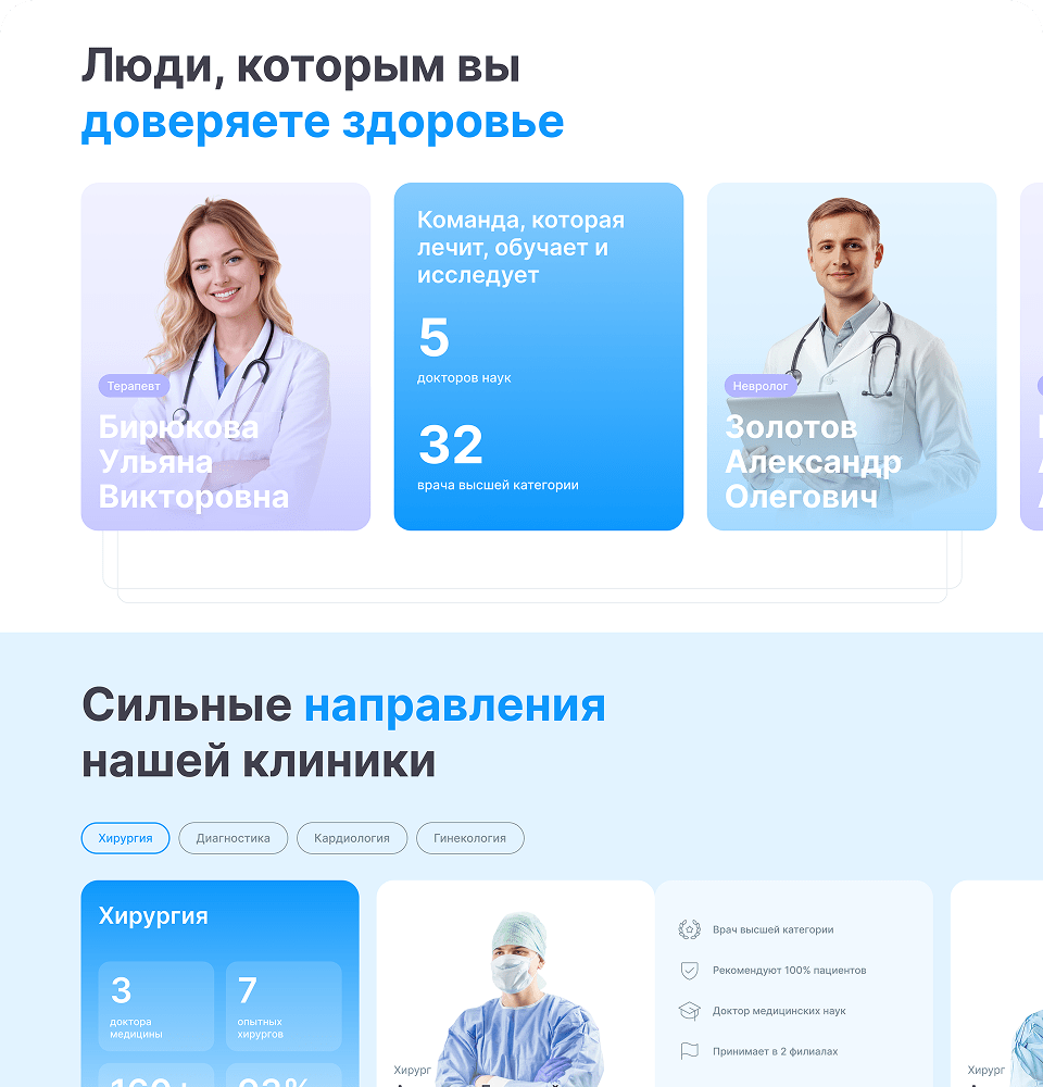 Мы предлагаем готовый сайт для частных медицинских центров, клиник и больниц с современным дизайном и мощным функционалом. В нем есть все необходимые возможности для современной цифровой клиники.